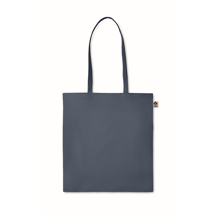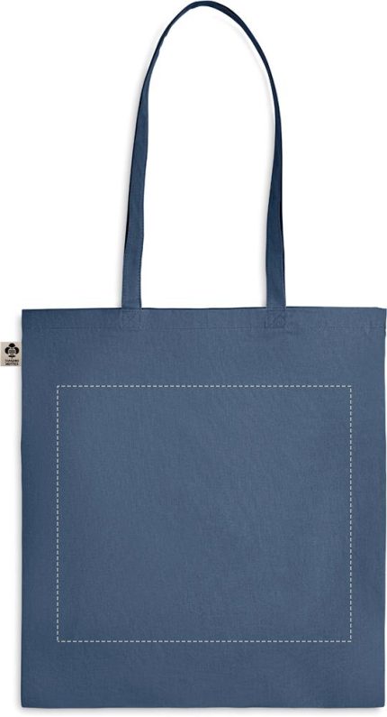 Organic cotton shopping bag with long handles. A classic tote bag design made to carry your daily groceries or other items. Carry the bag in your hands or over your shoulder with the long handles. Made from 100% natural organic cotton 140 gr/m².