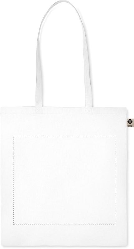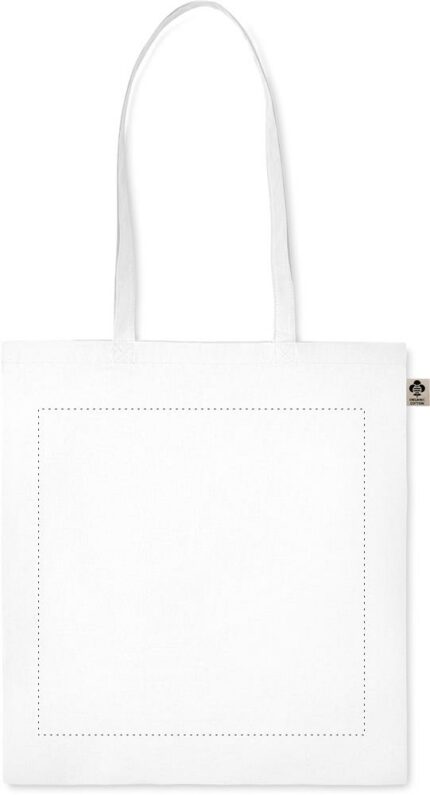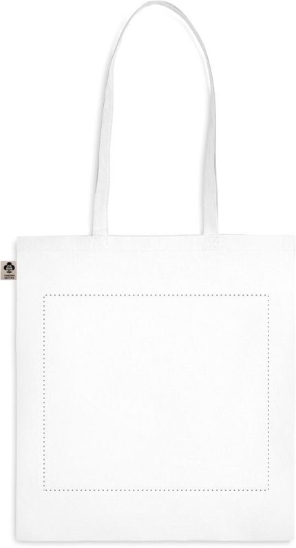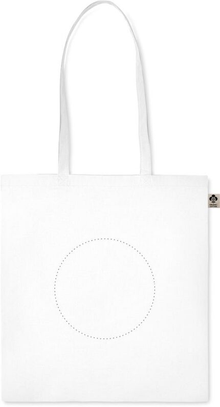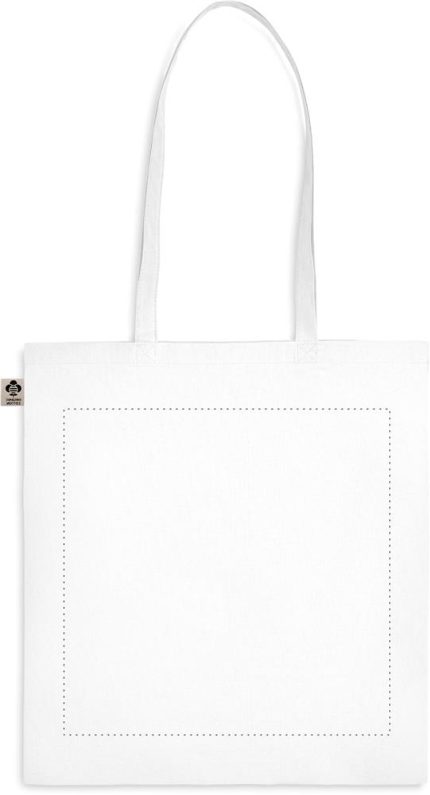 Organic cotton shopping bag with long handles. A classic tote bag design made to carry your daily groceries or other items. Carry the bag in your hands or over your shoulder with the long handles. Made from 100% natural organic cotton 140 gr/m².