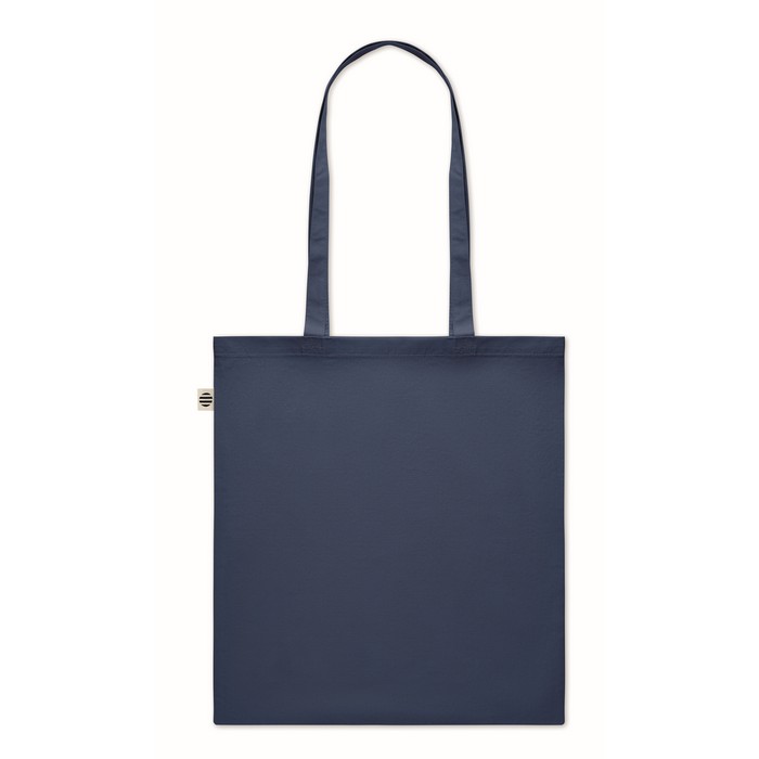 Recycled post-consumer cotton shopping bag (65% recycled cotton, 35% regular cotton) with long handles. 140 gr/m².