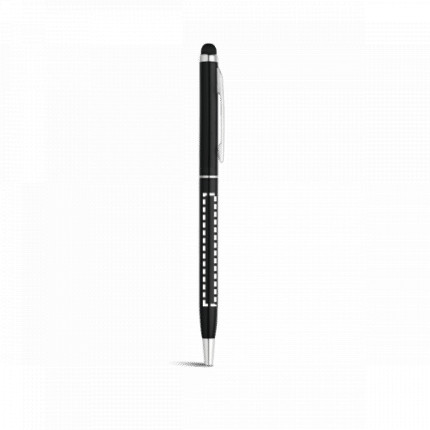 Aluminium ball pen with twist mechanism, clip and touch tip. Blue ink. ø8 x 135 mm